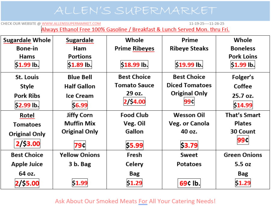 Ad Dates: 11-19-25 Through 11-26-25. Happy Thanksgiving!!!!